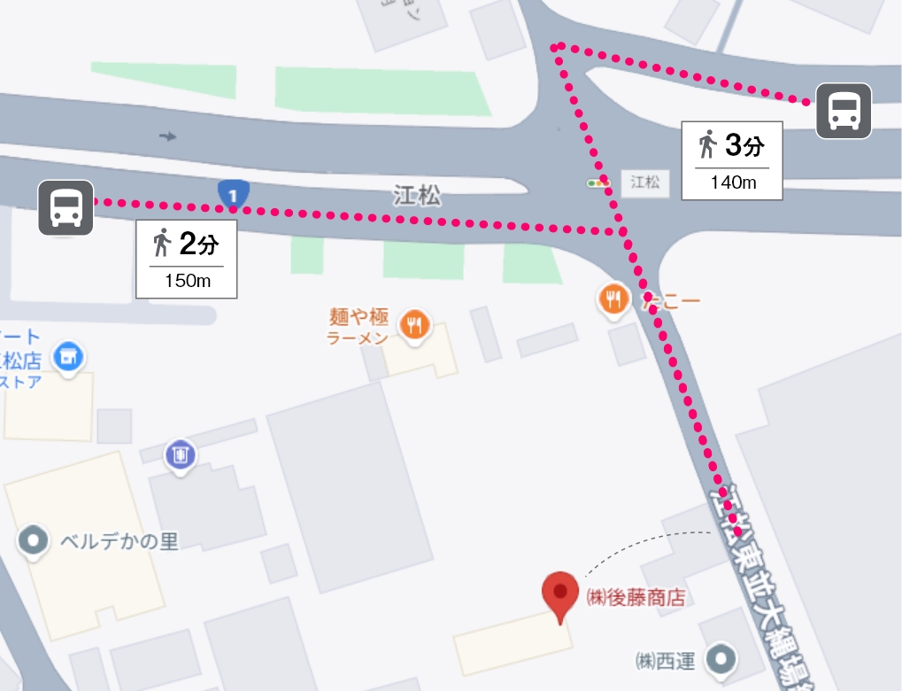 名鉄バス「江松バス停」から徒歩。